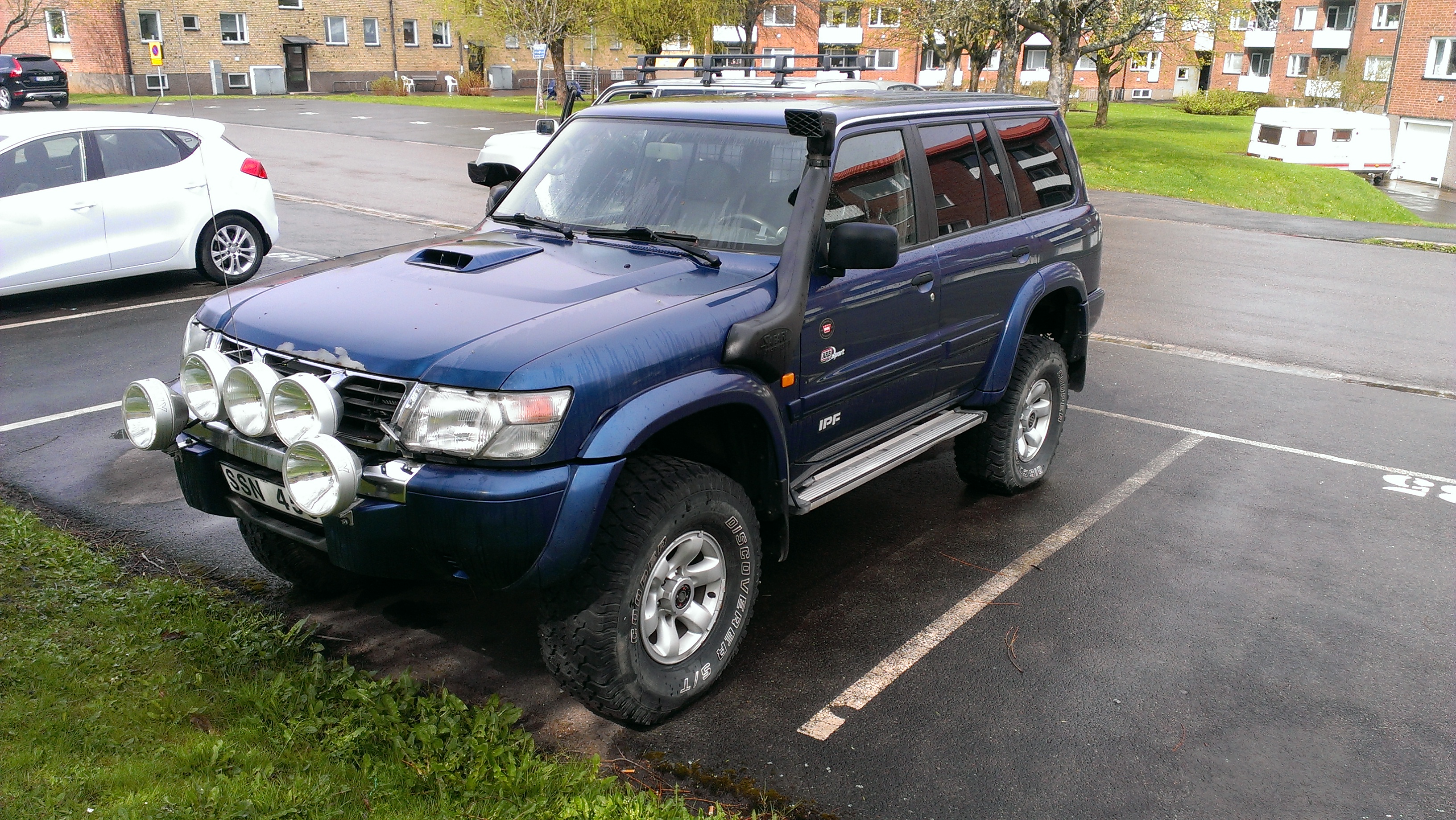 4x38" på felg Dick Cepek 4x38" på felg AT 405 4x35 på felg Cooper 4x35 på felg Cooper Takgrind Vinsj Ekstralys Org utv fra 3,0 automat til aksling, byttet ut til 5,42 ARB kufanger Ironman kufanger Org kufanger facelift Seter for og gjøre bil til 7-seter, begge ARB kompressor