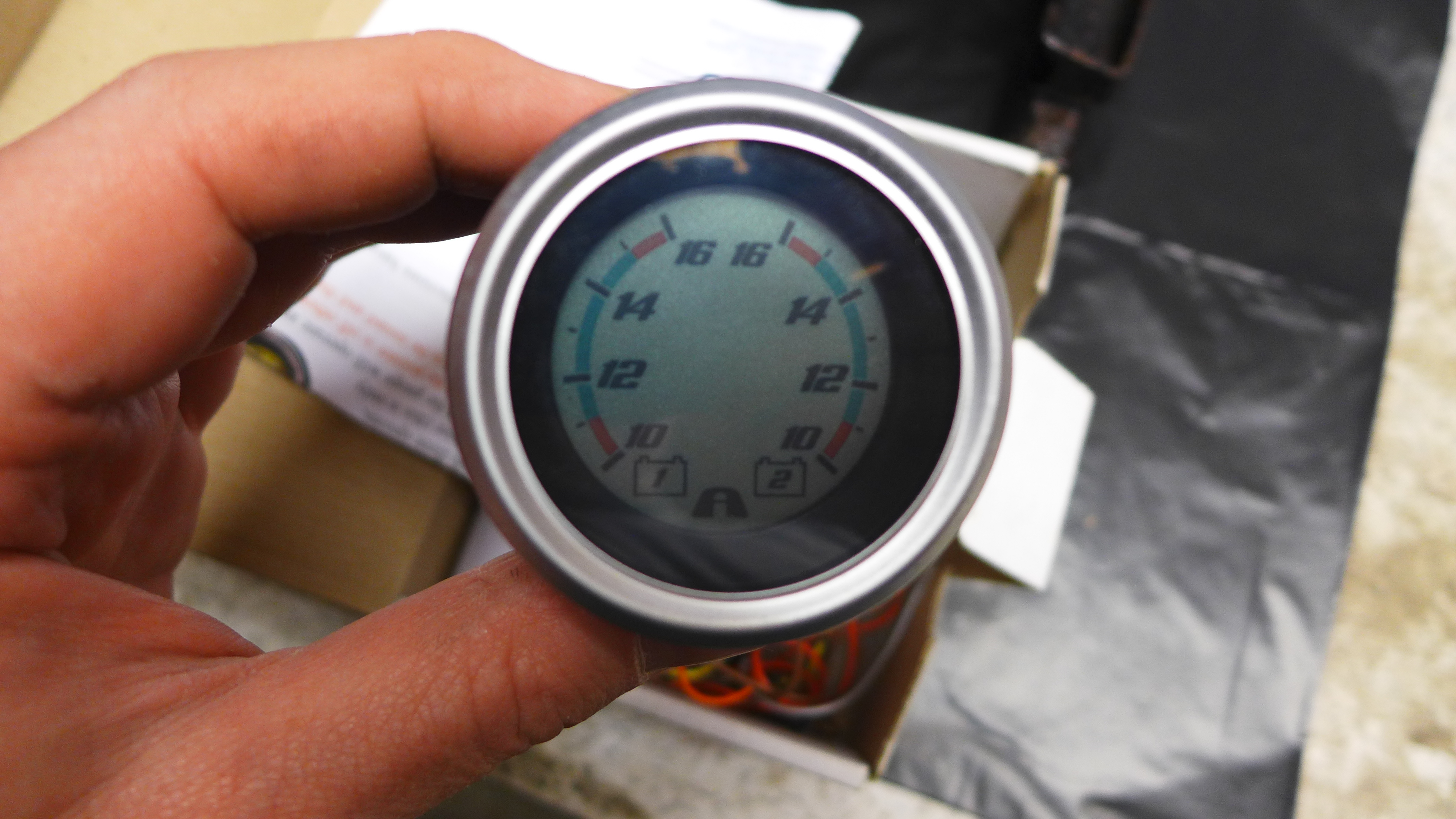 Instrumentet er for 52mm monteringshull. Topp der man har separate batterier for f.eks forbruk eller winch i bil eller båt.,-