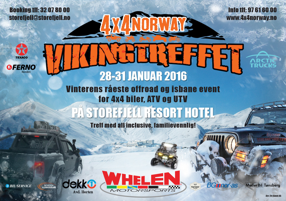 Vikingtreffet 2016 arrangeres av 4x4norway.no , I samarbeid med Storefjell Resort hotell på Golsfjellet. 28-30/1