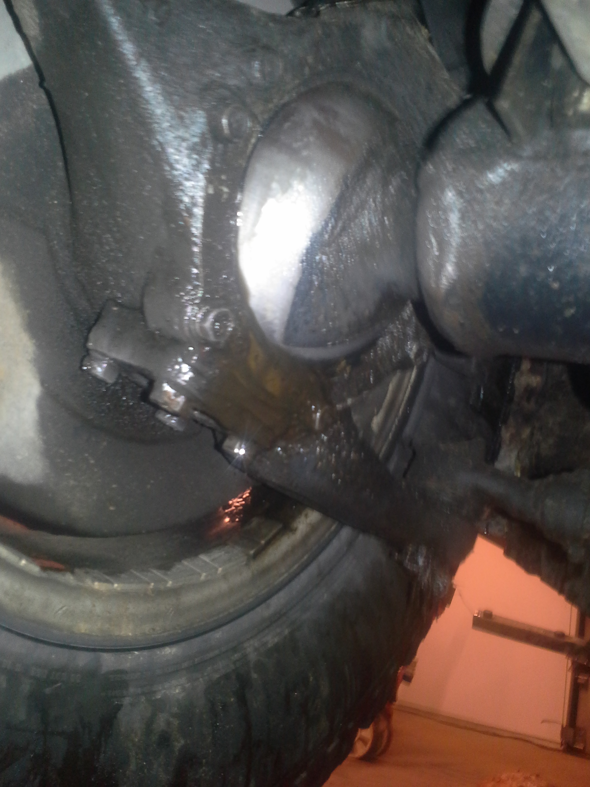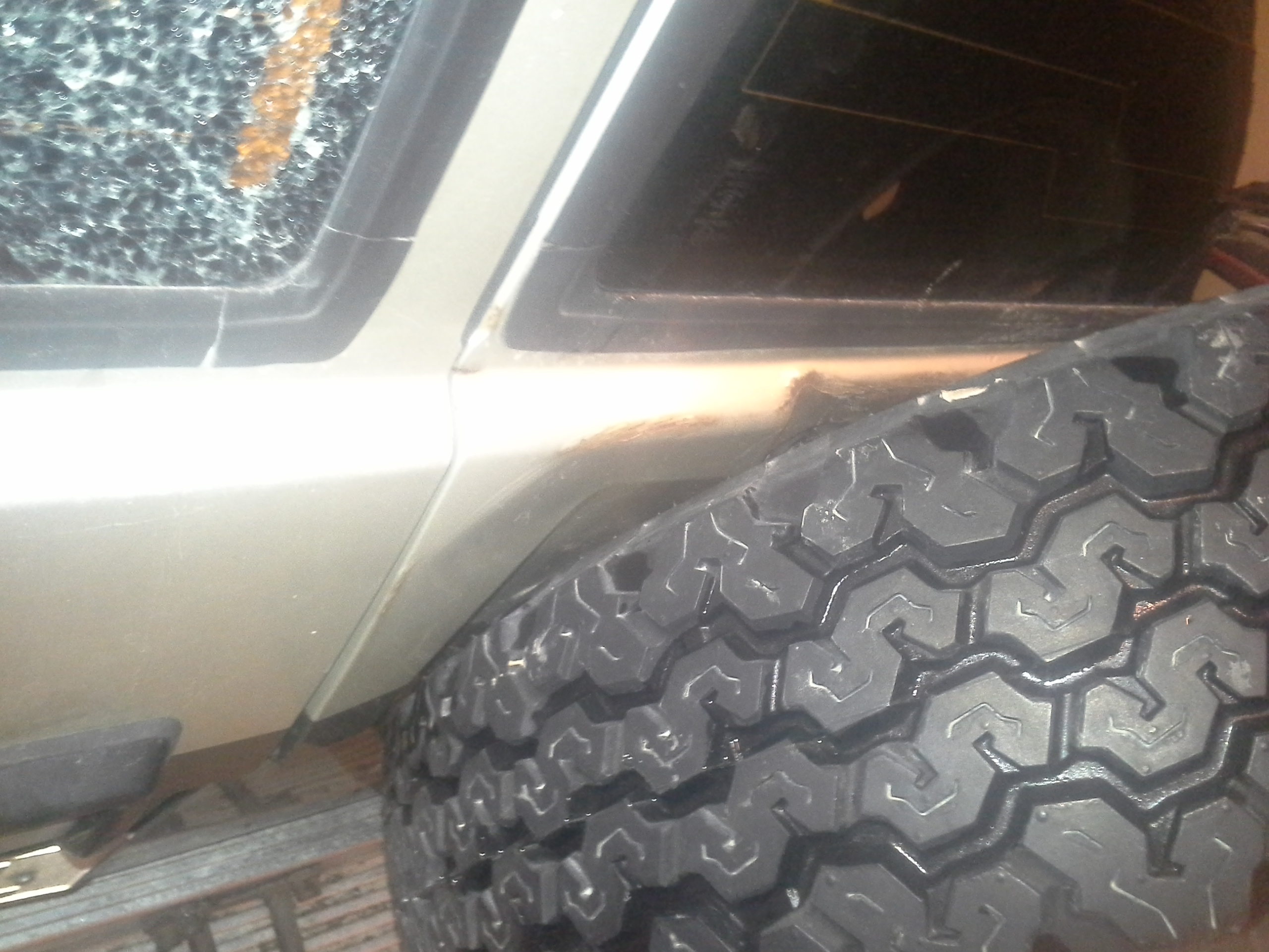 reserve hjul presset inn i bakluke (bakruta som e knust e byttet)