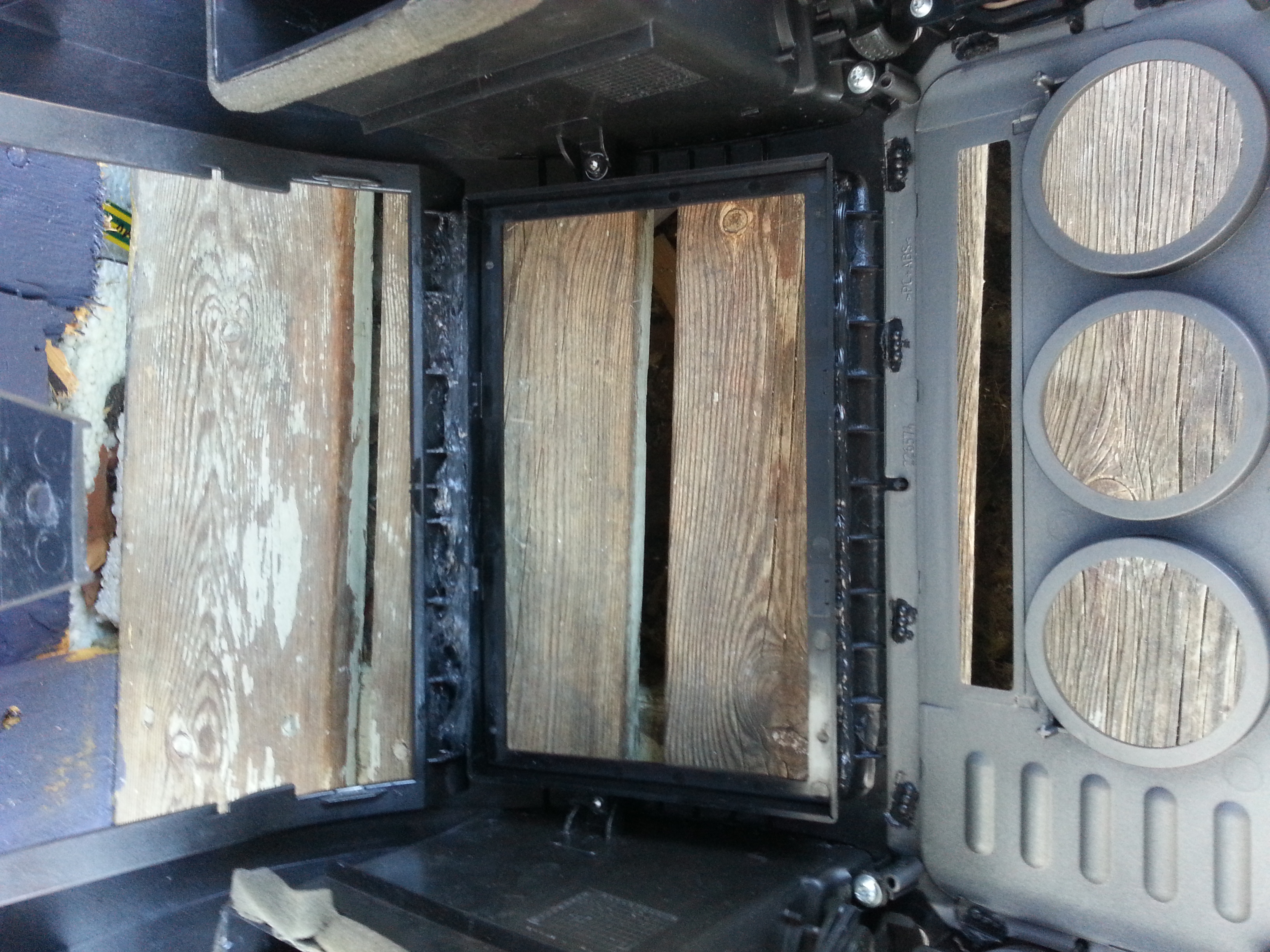 Limte da fast ramma til spelaren på baksida av midtkonsoll. Satt så spelaren ned i ramma og skrudde den fast med stålband.