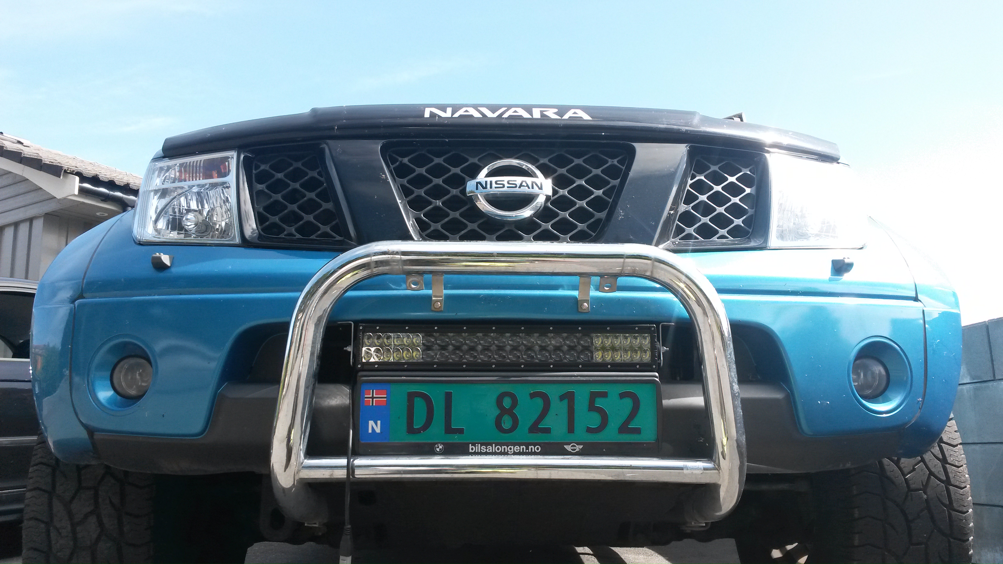 Tenker i utgangspunktet på en 20" LED bar som heter E2. Passer den over skiltet "inni" grillen på en 2008 mod. Navara?