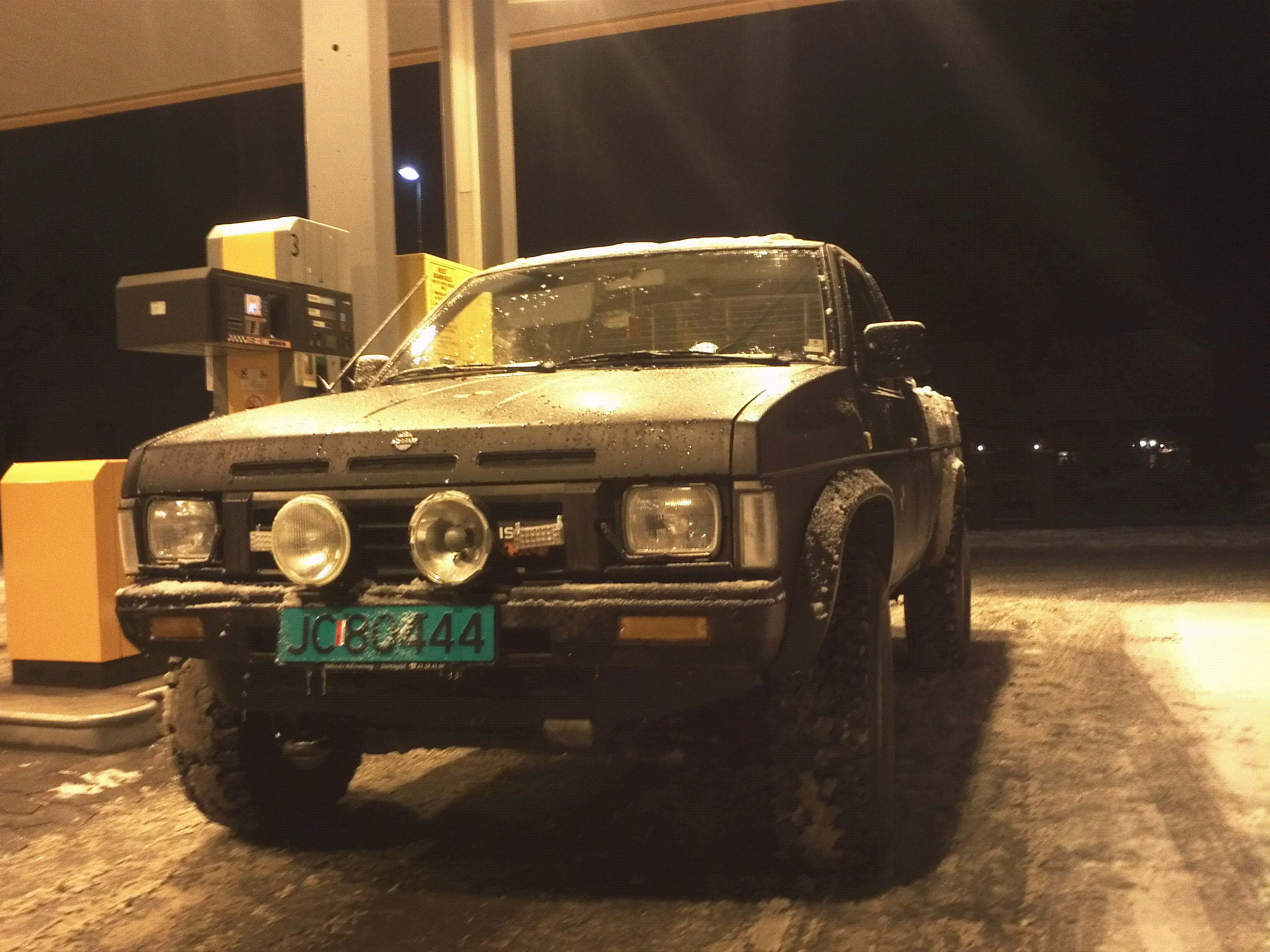 je har en nissan king cab 1986 modell som er gjort litt med fra forrige eier. er ikke sikker på hva som har blitt gjort men det finner men nokk snart ut:P