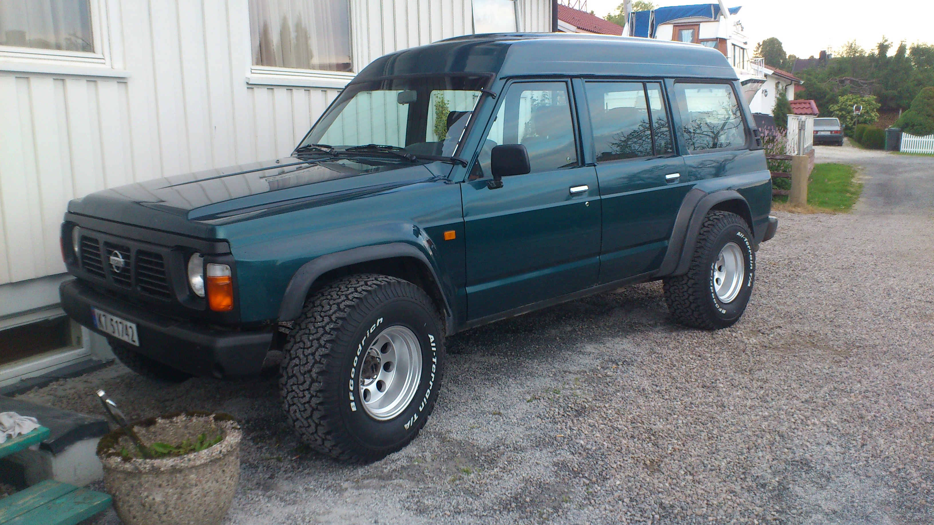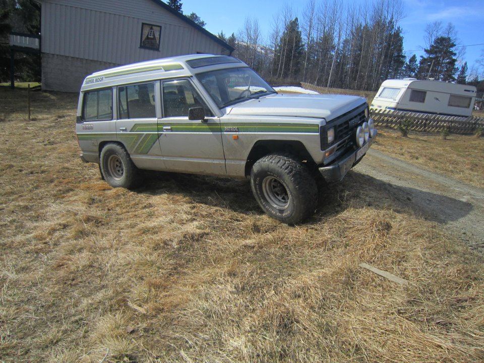 Heisann. Gisli heter eg. Eg har Nissan patrol 1994 med 96 motor. Bilen er har 2" body lift, hevet på fjöringene og men eg er ikkje sikker på kor möje. dekk, 38x15,5-15 ground hawk fram og gumbo monster mudder bak 3" åben eksos 2.8 TDI framtids planer er 4,2TDI eller 6,2chevy 4 Kc 150w 6" eller 8" på toppen. Og litt diverse