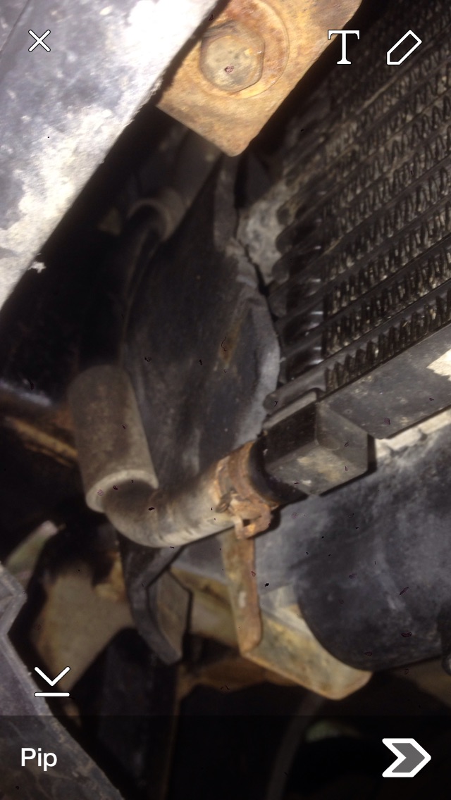 Har IKKE byttet radiator som koster over 12000, men kuttet et 10 mm rør, og koblet inn_ og utgående oljeslange sammen via rørstubben, VED SIDEN AV RADIATOR. For å være på den sikre siden har jeg montert oljetempmåler på kassa. FULL KONTROLL
